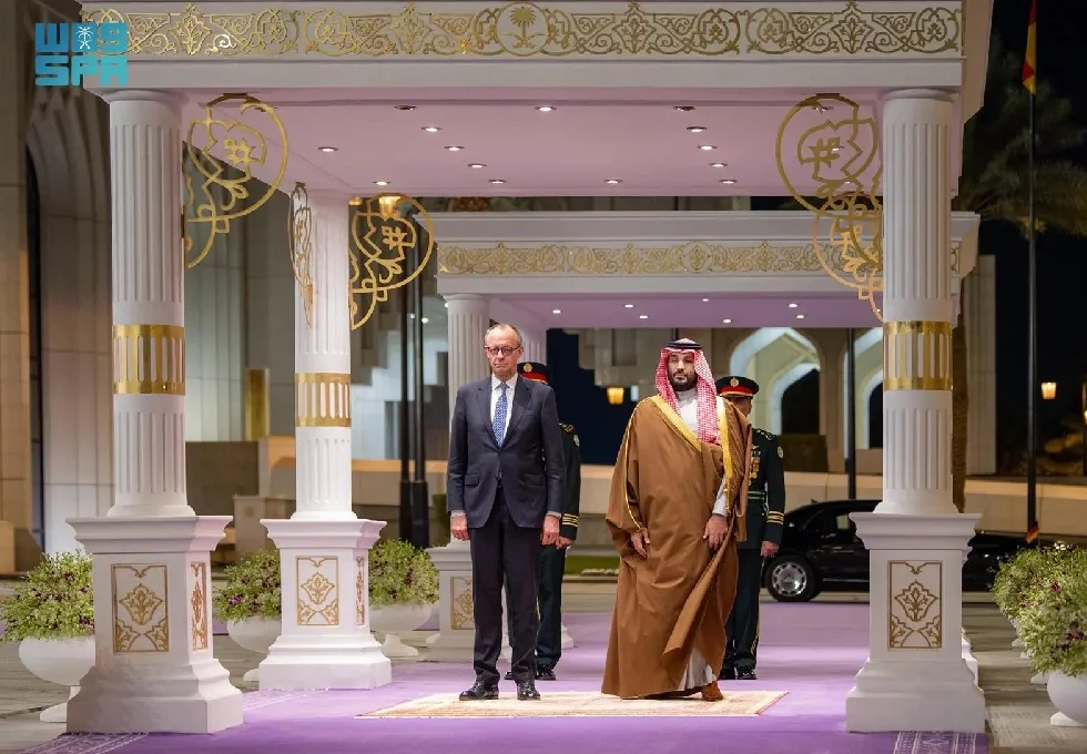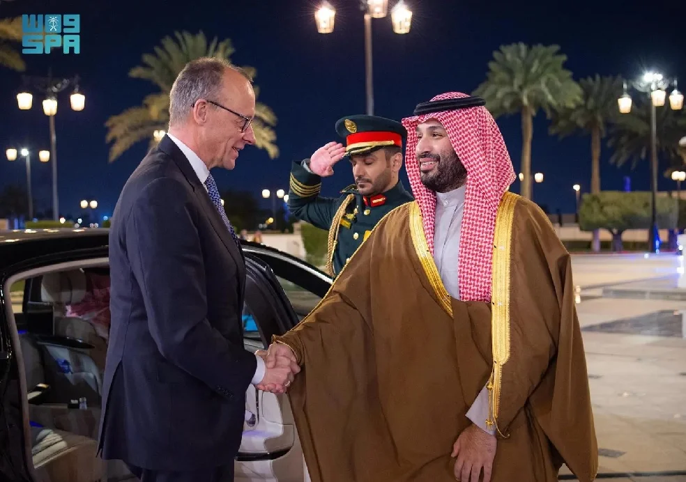 سعودی پریس ایجنسی کے مطابق ریاض کے قصرِ یمامہ جرمن چانسلر فریدرل مرز کا استقبال کیا گیا ہے۔